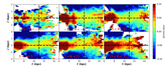 图为不同方位角下金属丰度在R-Z平面上分布图。