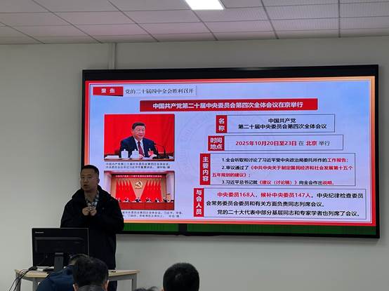 白启鹏副教授从深刻领会党的二十届四中全会的重大意义为切入点,紧密围绕实施科教兴国战略,强化现代化建设人才支撑,教育、科技、人才是全面建设社会主义现代化国家的基础性、战略性支撑,从坚持教育发展、科技创新、人才培养一体推进,深入实施科教兴国战略、人才强国战略、创新驱动发展战略,坚持教育优先发展、科技自立自强、人才引领驱动等三个方面,深刻阐释中国式现代化建设的教育、科技、人才战略。通过详实的数据分析、鲜活的案例阐释,号召广大干部员工要深刻抓住新一轮科技革命和产业变革历史机遇,加强原始创新和关键核心技术攻关,推动科技创新和产业创新深度融合,踔厉奋发,为学校高质量发展贡献力量。